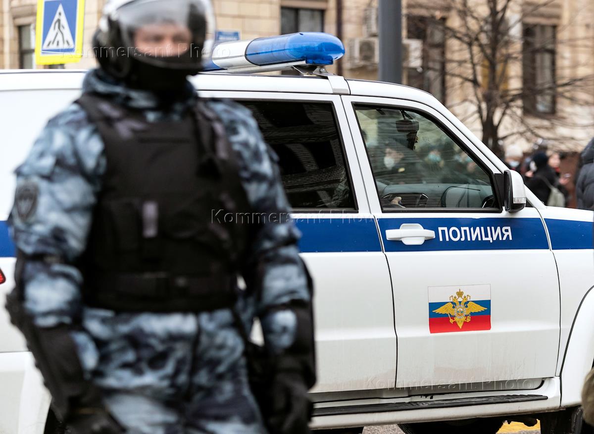 Митинг в поддержку политика Алексея Навального. Сотрудники полиции во время оцепления места проведения митинга.