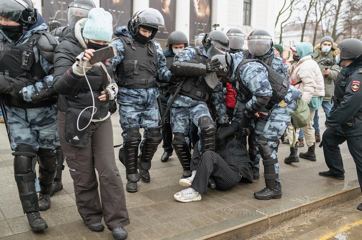 Акция в поддержку задержанного оппозиционера Алексея Навального на проспекте Революции. Сотрудники полиции во время задержания участников митинга.
