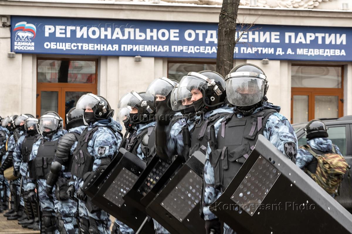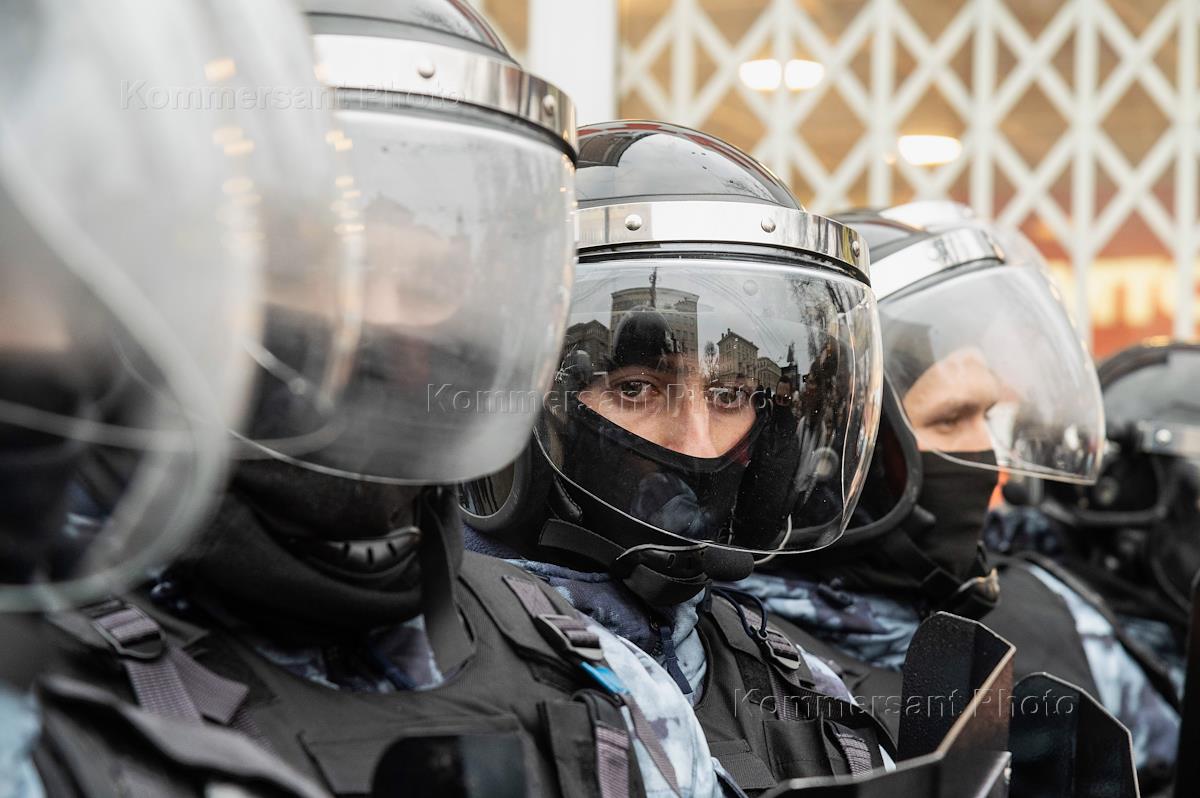 Митинг в поддержку политика Алексея Навального в Воронеже. Сотрудники ОМОН в полной экипировке.