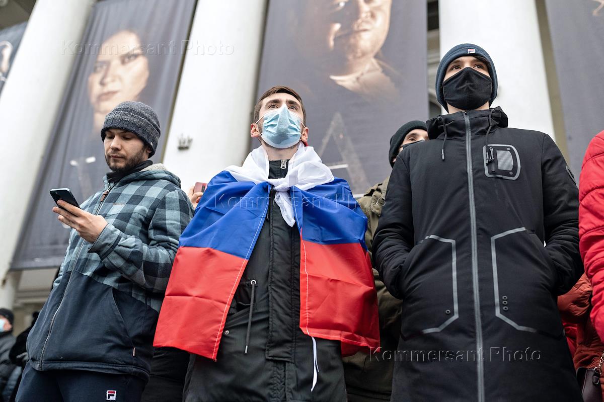 A rally in support of the detained opposition leader Alexei Navalny on Revolution Avenue. Police officers during the arrest of protesters.