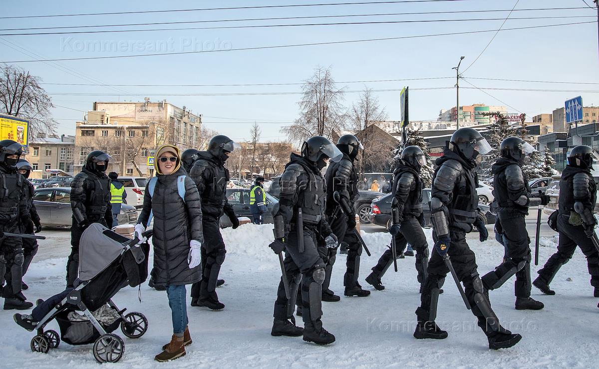 Митинг в поддержку политика Алексея Навального. Сотрудники полиции во время оцепления места проведения митинга.