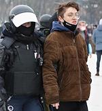 Несогласованная акция в поддержку задержанного оппозиционера Алексея Навального в центре города. Участники во время акции.