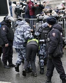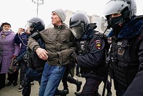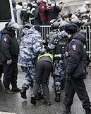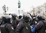 Акция в поддержку задержанного оппозиционера Алексея Навального на Пушкинской площади. Сотрудники полиции во время задержания участников акции.