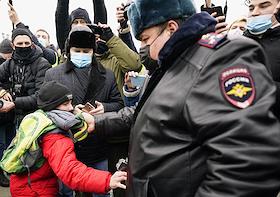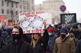 Акция в поддержку задержанного оппозиционера Алексея Навального в центре города. Участники во время акции.