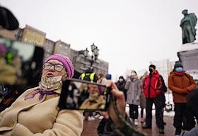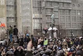 Акция в поддержку задержанного оппозиционера Алексея Навального на Пушкинской площади. Участники во время акции.