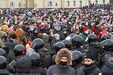 Акция в поддержку задержанного оппозиционера Алексея Навального на Сенатской площади. Сотрудники полиции во время задержания участников акции.