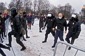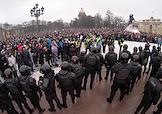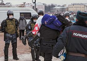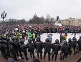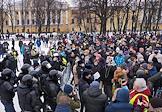 Акция в поддержку задержанного оппозиционера Алексея Навального на Сенатской площади. Сотрудники полиции во время задержания участников акции.