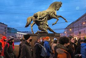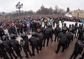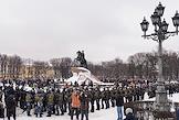 Акция в поддержку задержанного оппозиционера Алексея Навального на Сенатской площади. Участники во время акции.