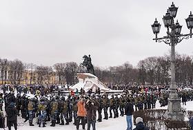 Акция в поддержку задержанного оппозиционера Алексея Навального на Сенатской площади. Сотрудники полиции во время проведения акции.