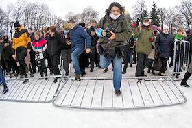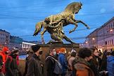 Акция в поддержку задержанного оппозиционера Алексея Навального в центре города. Участники во время шествия по Аничкову мосту.