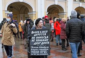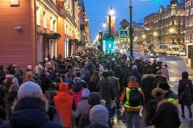 Акция в поддержку задержанного оппозиционера Алексея Навального на Невском проспекте. Участники во время акции.