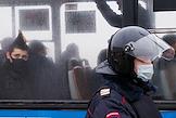 Митинг в поддержку политика Алексея Навального в Санкт-Петербурге. Задержанные участники митинга в полицейском автобусе.