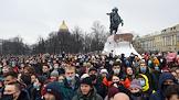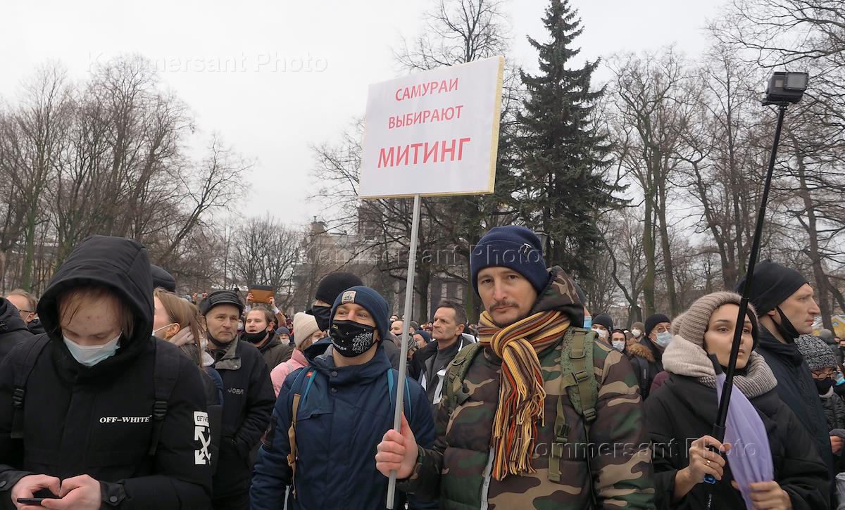 Акция в поддержку задержанного оппозиционера Алексея Навального на Сенатской площади. Участники во время акции.