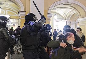Акция в поддержку задержанного оппозиционера Алексея Навального у Гостиного двора. Сотрудники полиции во время задержания участников акции.