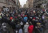 Акция в поддержку задержанного оппозиционера Алексея Навального в центре города. Участники во время акции.
