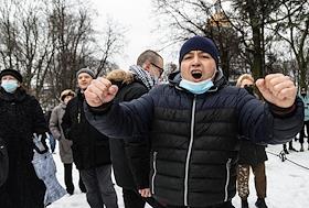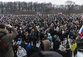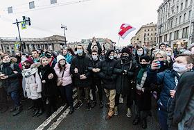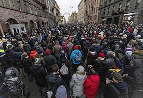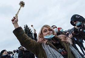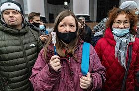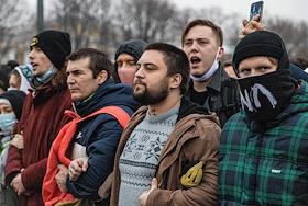 Акция в поддержку задержанного оппозиционера Алексея Навального. Участники во время акции.