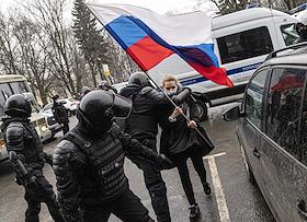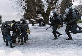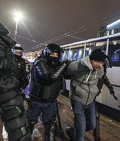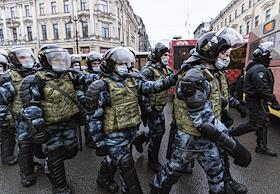 Акции в поддержку задержанного оппозиционера Алексея Навального. Сотрудники полиции во время задержания участников акции.