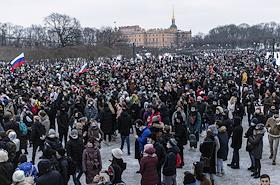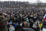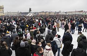 Акция в поддержку задержанного оппозиционера Алексея Навального на Сенатской площади. Участники во время акции.