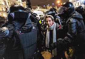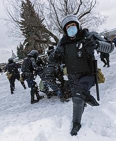 Акция в поддержку задержанного оппозиционера Алексея Навального в центре города. Сотрудники правоохранительных органов во время акции.