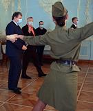 Празднование Дня российского студента ("Татьянин день") в Колонном зале Дома Союзов. Лидер Либерально-демократической партии России (ЛДПР) Владимир Жириновский (второй слева) перед началом выступления перед студентами Института мировых цивилизаций.