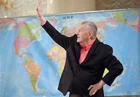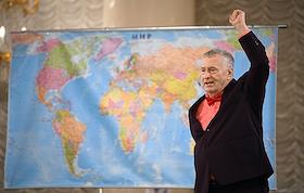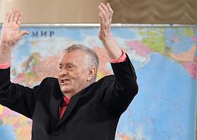 Празднование Дня российского студента ("Татьянин день") в Колонном зале Дома Союзов. Лидер Либерально-демократической партии России (ЛДПР) Владимир Жириновский во время выступления перед студентами Института мировых цивилизаций.