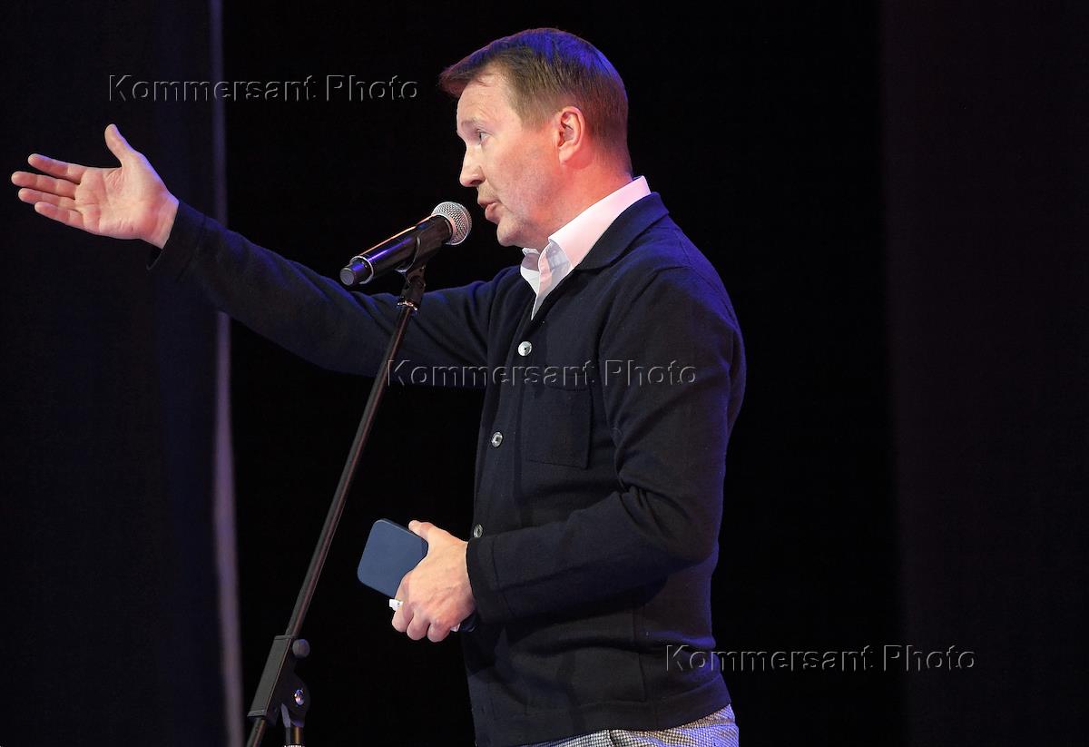 Презентация книги директора по стратегическим направлениям ИД "Коммерсантъ" Виктора Лошака "Наивные годы. Егор Яковлев и его газета" прошла в "Театре Мюзикла" в рамках серии встреч "Михаил Швыдкой приглашает...". Профессор ВШЭ Дмитрий Якушкин во время презентации.