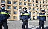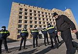 Митинг против ограничений, связанных с пандемией коронавирусной инфекции COVID-19, у здания канцелярии правительства Грузии. Сотрудники полиции во время оцепления на месте митинга.