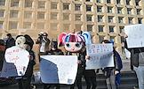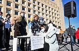 Участники митинга против ограничений, связанных с пандемией коронавирусной инфекции COVID-19, у здания канцелярии правительства Грузии.