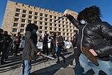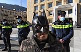 Участник митинга в маске бэтмена против ограничений, связанных с пандемией коронавирусной инфекции COVID-19, у здания канцелярии правительства Грузии.