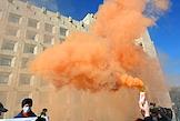 Участник митинга против ограничений, связанных с пандемией коронавирусной инфекции COVID-19, у здания канцелярии правительства Грузии.