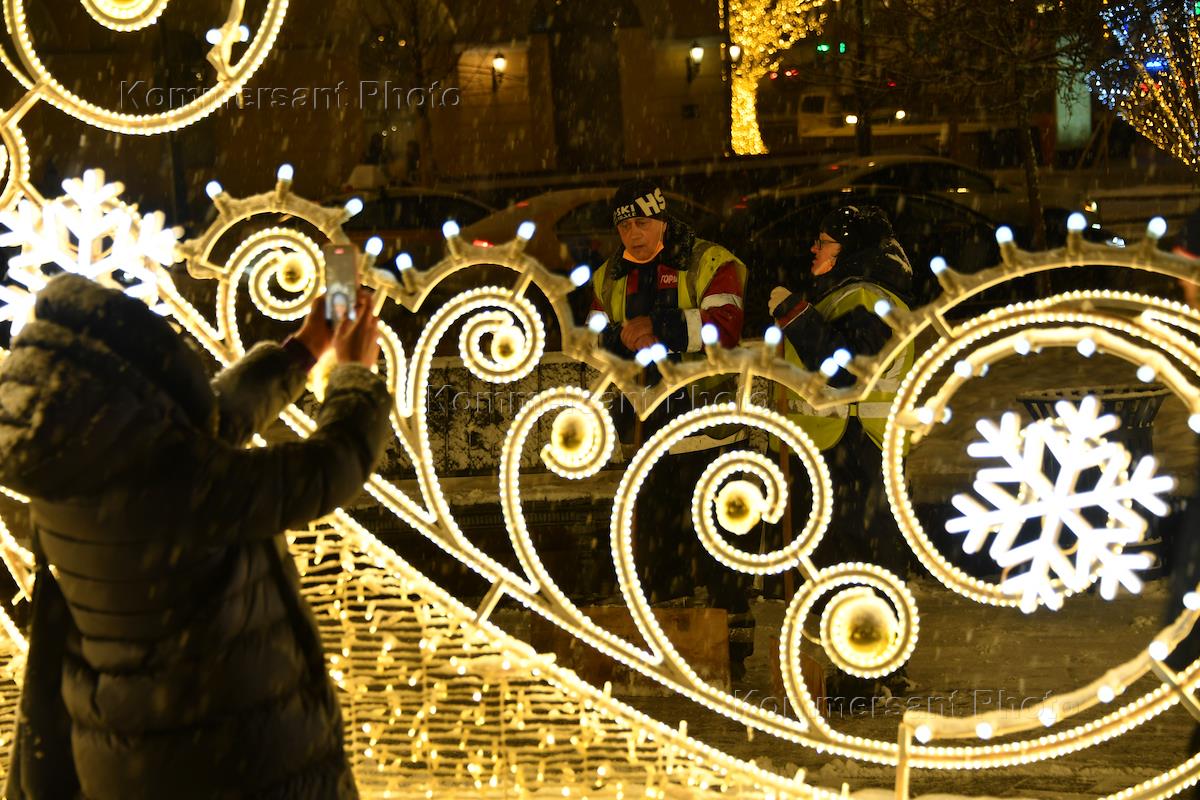 Views of Moscow. Genre photography. New Year decoration of the city.