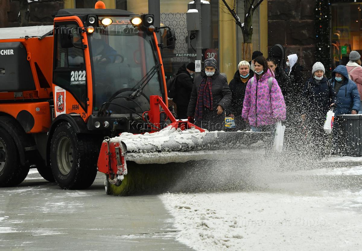 Views of Moscow. Genre photography. Snow removal equipment while cleaning the street after a snowfall.