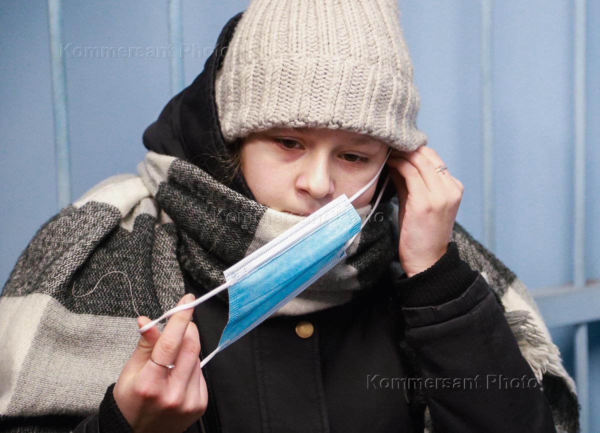 Виды Новосибирска. Жанровая фотография. Усиление контроля за соблюдением "масочного режима" в общественном транспорте. Женщина надевает медицинскую маску.