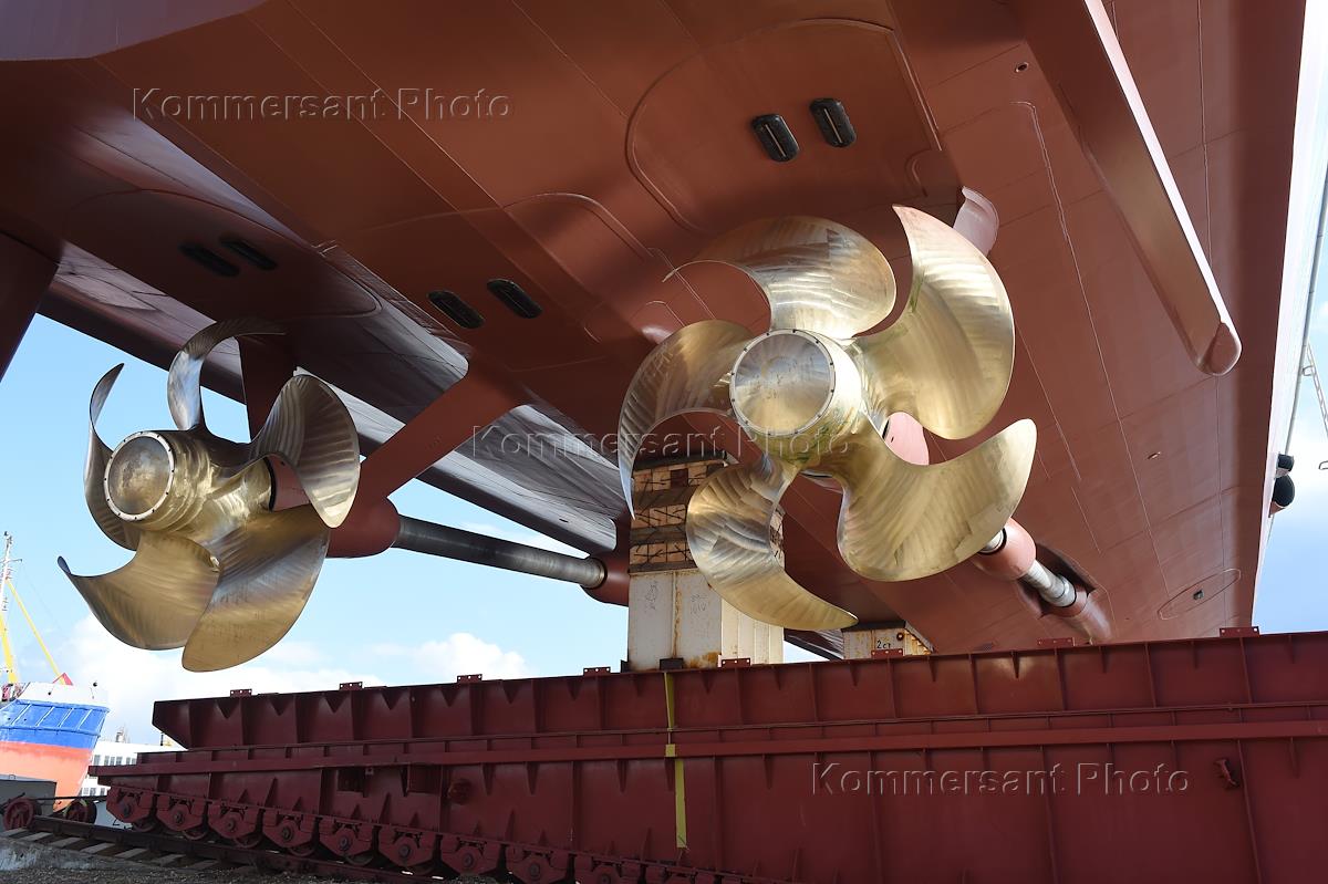 Церемония спуска на воду патрульного корабля "Сергей Котов" на судостроительном заводе "Залив".