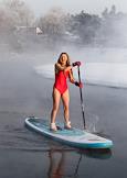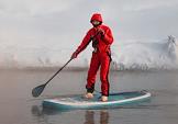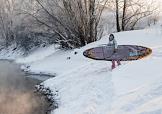 Жанровая фотография. Любители SUP-серфинга во время плавания по реке Оби на SUB бордадх при температуре минус 31 градус.