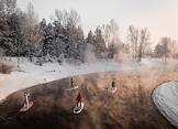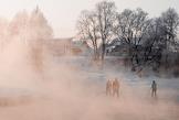 Жанровая фотография. Любители SUP-серфинга во время подготовки к плаванию по реке Оби на SUB бордах при температуре минус 31 градус.