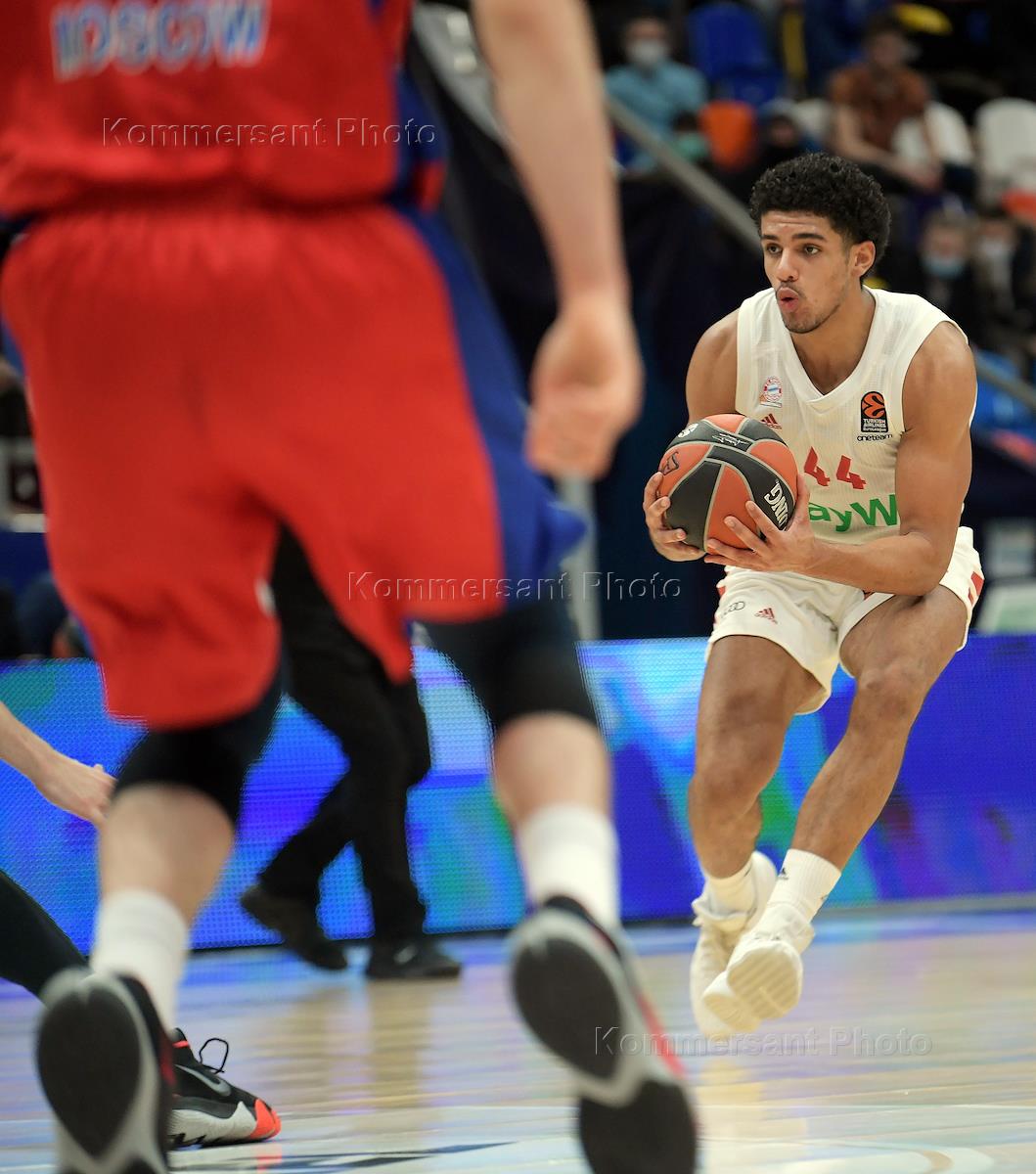 Евролига по баскетболу. Матч между командами ЦСКА (Москва, Россия) - "Бавария" (Бавария, Германия) на стадионе "Мегаспорт". Игрок команды команды "Бавария" Джален Рейнлольдс (в центре) во время матча.