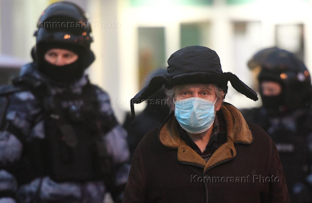 An unauthorized rally in support of opposition leader Alexei Navalny in Moscow. Law enforcement officers in a cordon in the city center.