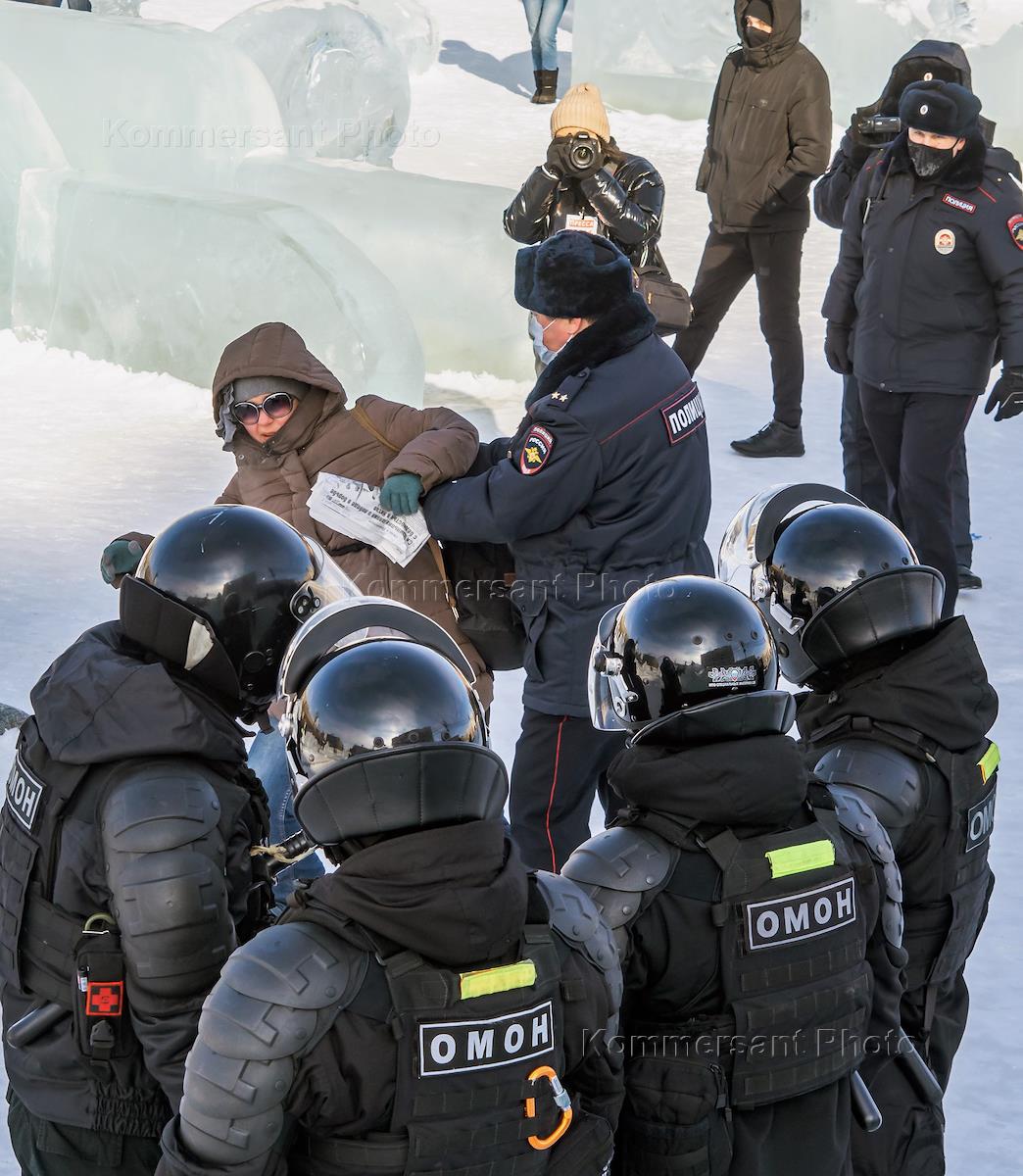 Несогласованная акция сторонников политика Алексея Навального в Хабаровске. Сотрудники полиции во время задержание участников акции.