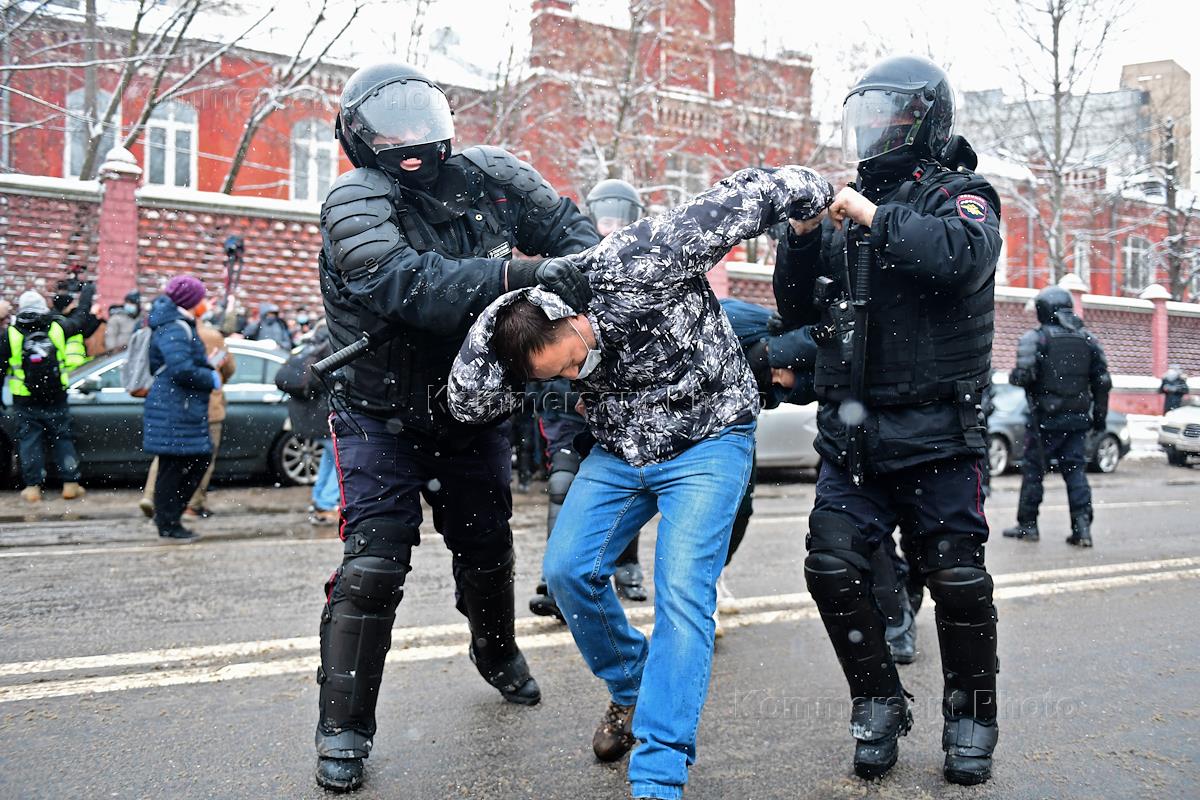 An unauthorized rally in support of opposition leader Alexei Navalny in Moscow. Detention of protesters in the city center.