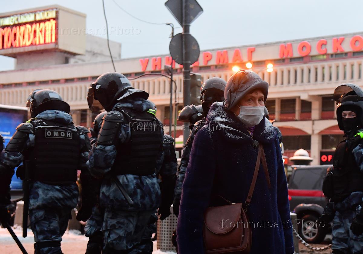 An unauthorized rally in support of opposition leader Alexei Navalny in Moscow. Law enforcement officers at Komsomolskaya Square.