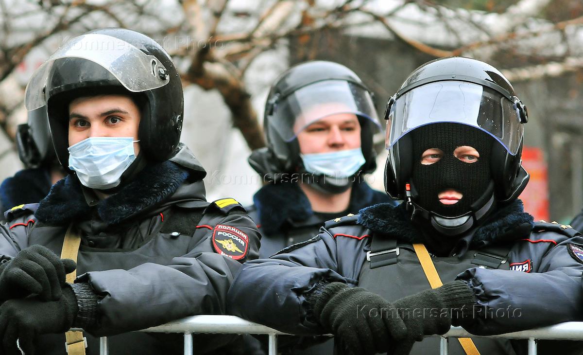 Несогласованная акция сторонников оппозиционера Алексея Навального в Ростове-на-Дону. Сотрудники правоохранительных органов в оцеплении во время акции.
