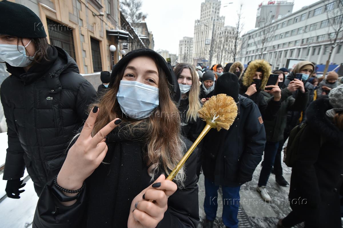 Unauthorised rally in support of politician Alexei Navalny. Participants of the rally in the city center.