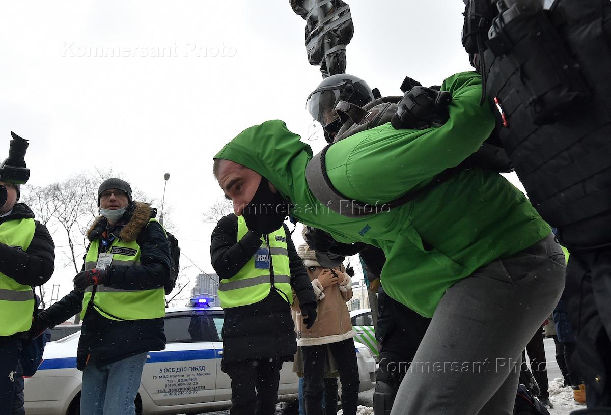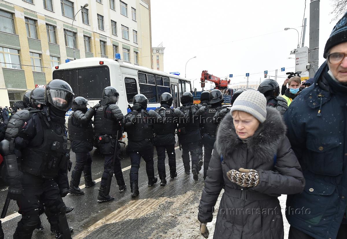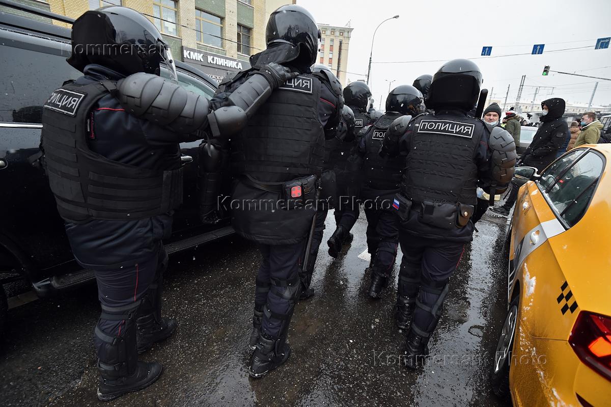 Несогласованная акция в поддержку оппозиционера Алексея Навального в Москве. Сотрудники правоохранительных органов во время задержания участников акции в центре города.