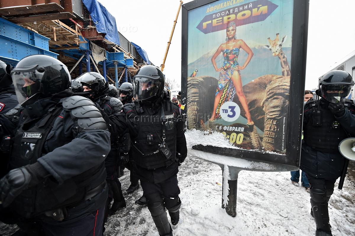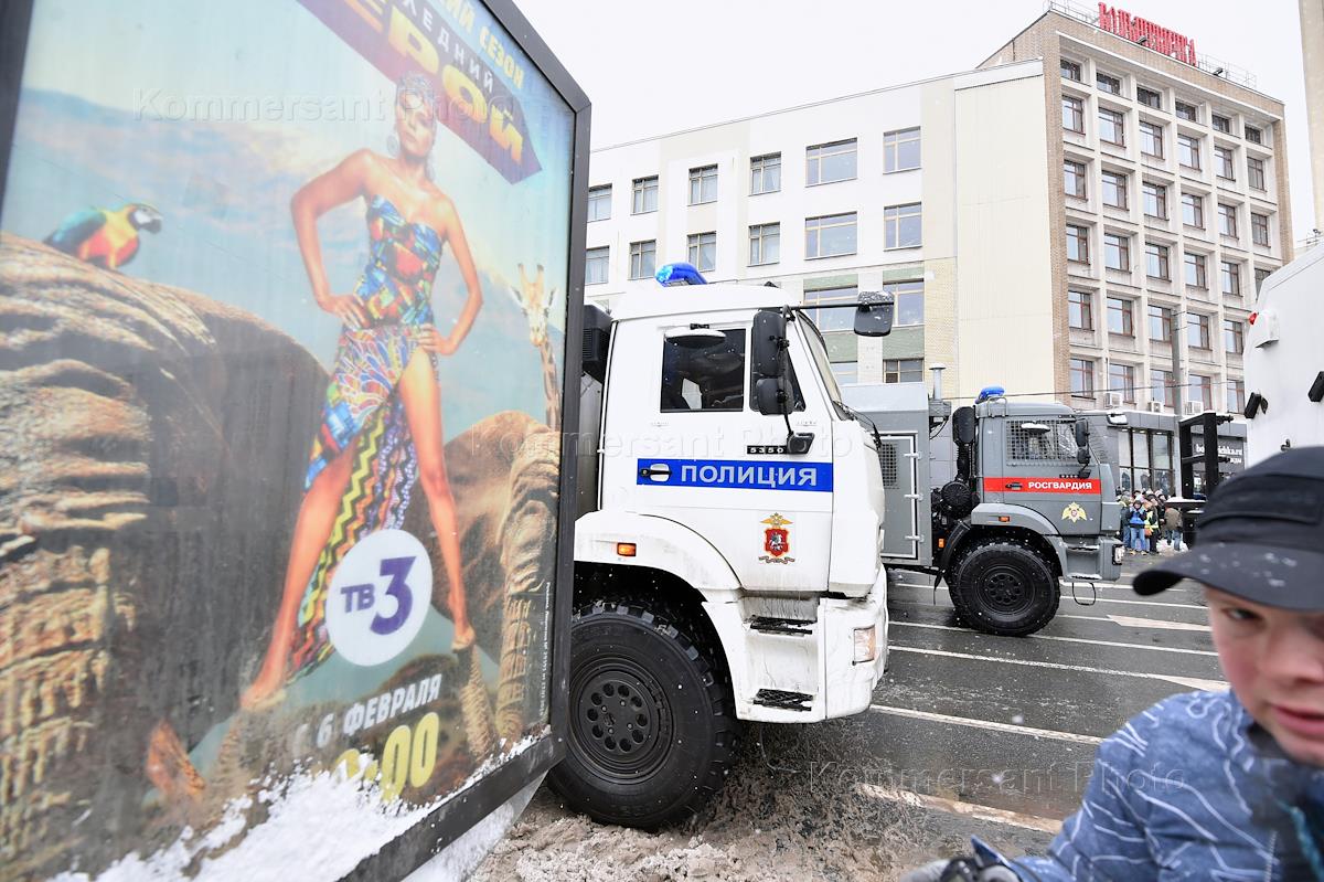 Несогласованная акция в поддержку оппозиционера Алексея Навального в Москве. Сотрудники правоохранительных органов во время задержания участников акции в центре города.