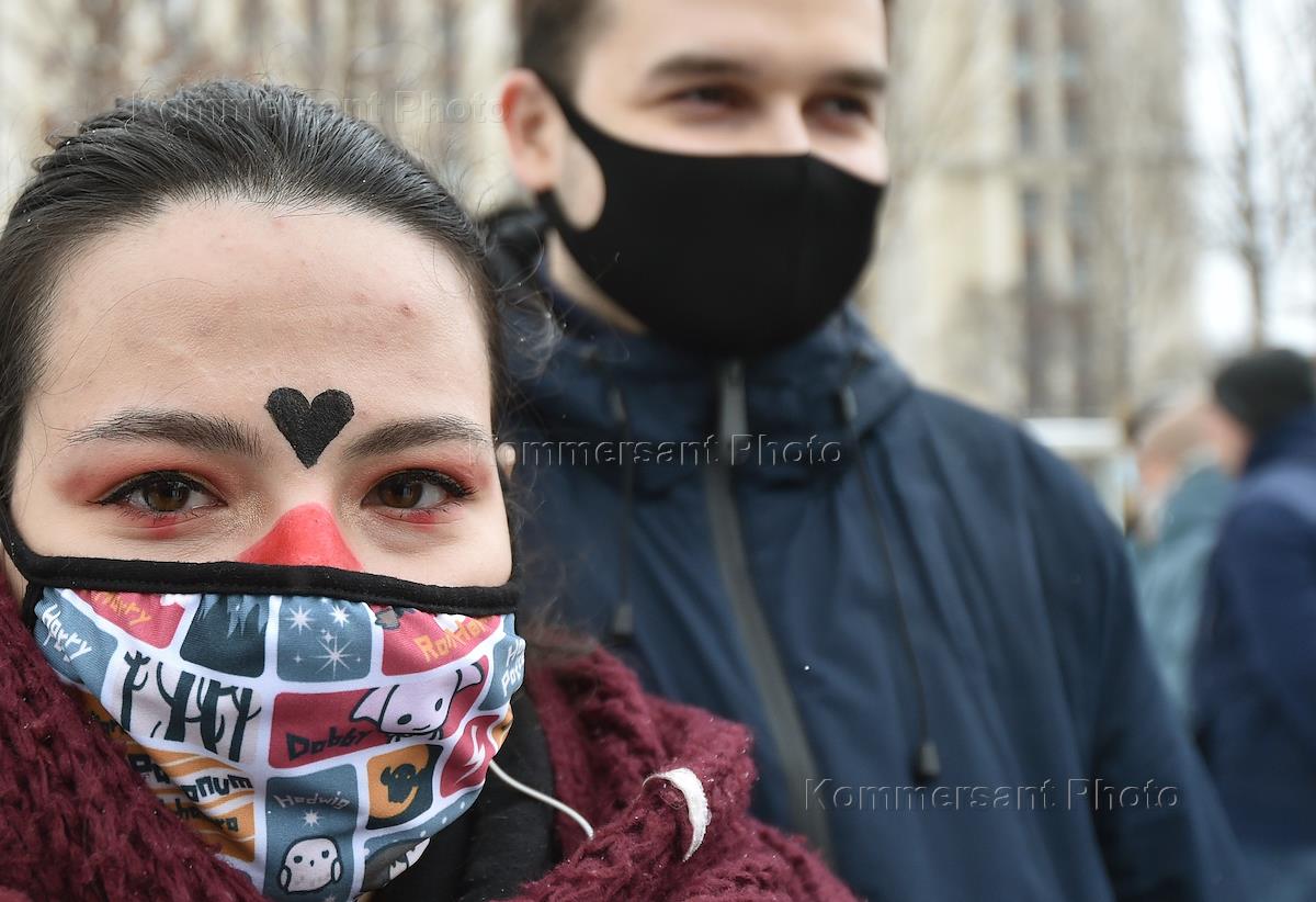 Несогласованная акция в поддержку оппозиционера Алексея Навального. Участники акции в центре города.