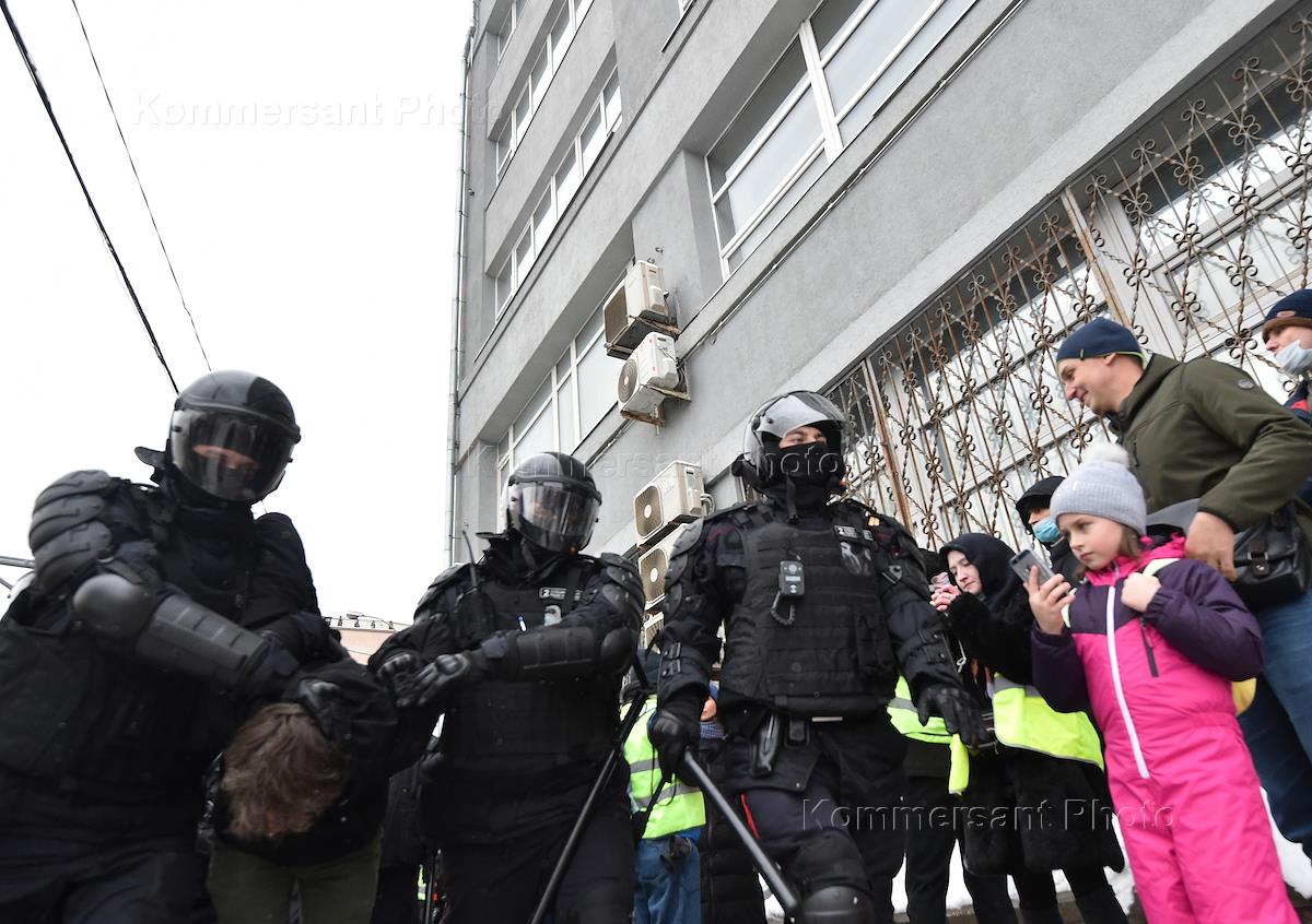 Unauthorised rally in support of politician Alexei Navalny. Police officers arresting protesters.