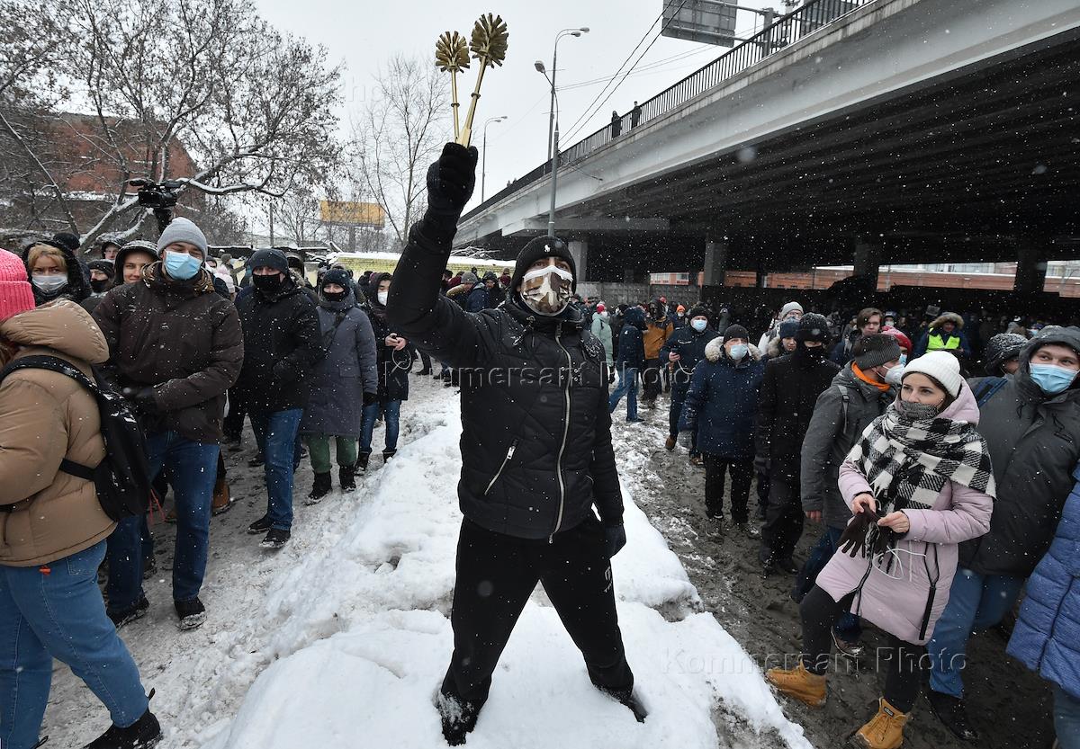 Несогласованная акция в поддержку оппозиционера Алексея Навального. Участники акции в центре города.