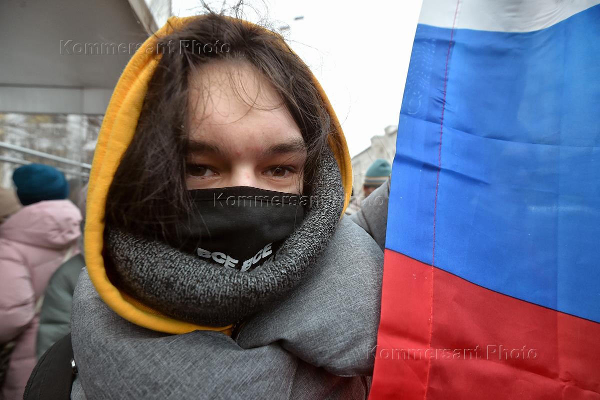 Unauthorised rally in support of politician Alexei Navalny. Participants during the rally.