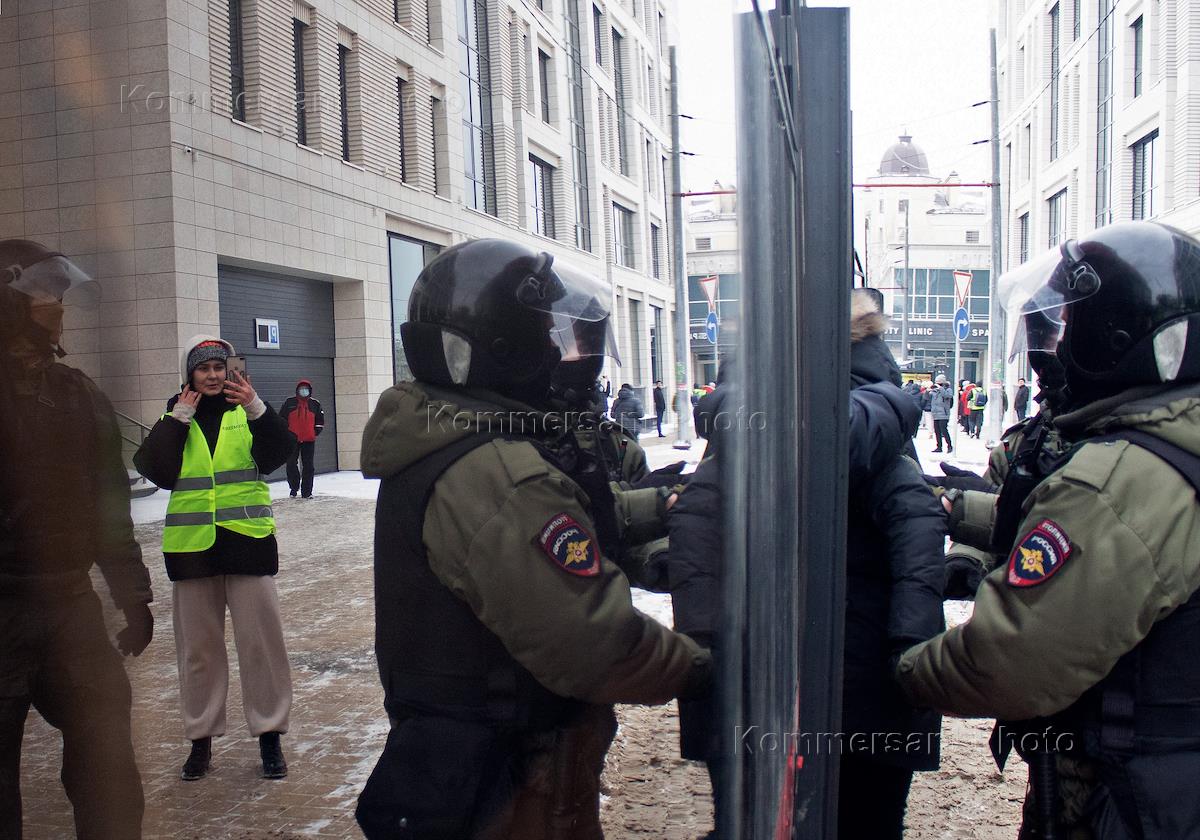 Unauthorized rally in support of opposition leader Alexei Navalny. OMON officers during the cordoning off the place of the rally.